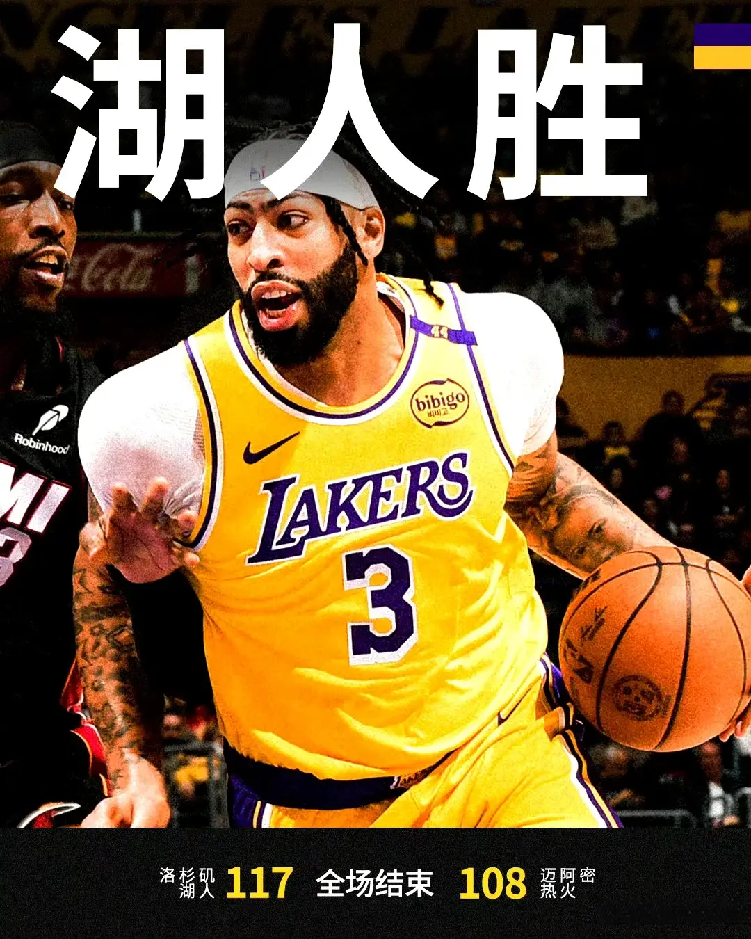 湖人赢了,在主场以117-108战胜热火队,结束了三连败!